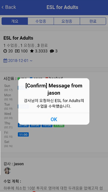 수업 요청을 강사가 실시간으로 처리함