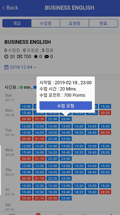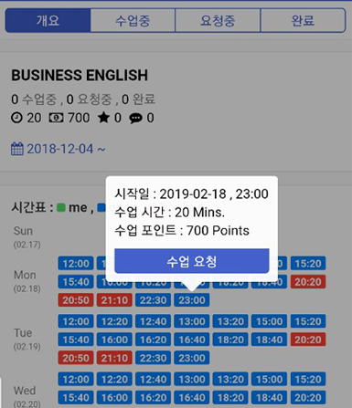 실시간 가능한 시간에서 수업요청
