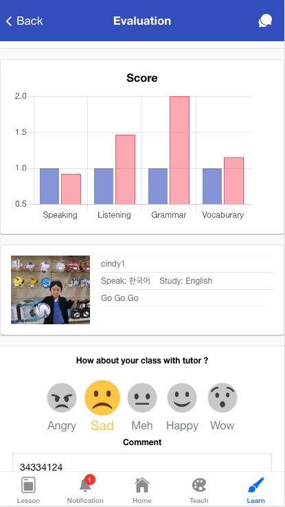 수업후 실시간으로 반영되는 평가서